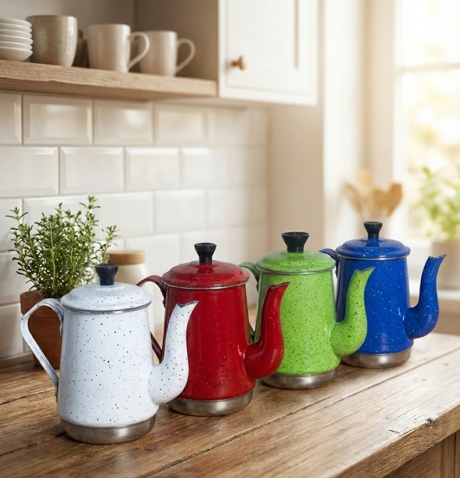 Adicione um toque de elegância e tradição ao seu café com o nosso Mini Bule Esmaltado. Esta peça combina o design clássico das cozinhas antigas com a durabilidade necessária para o uso moderno. É o item ideal para quem aprecia porções individuais ou deseja compor uma mesa posta com estilo rústico e acolhedor.